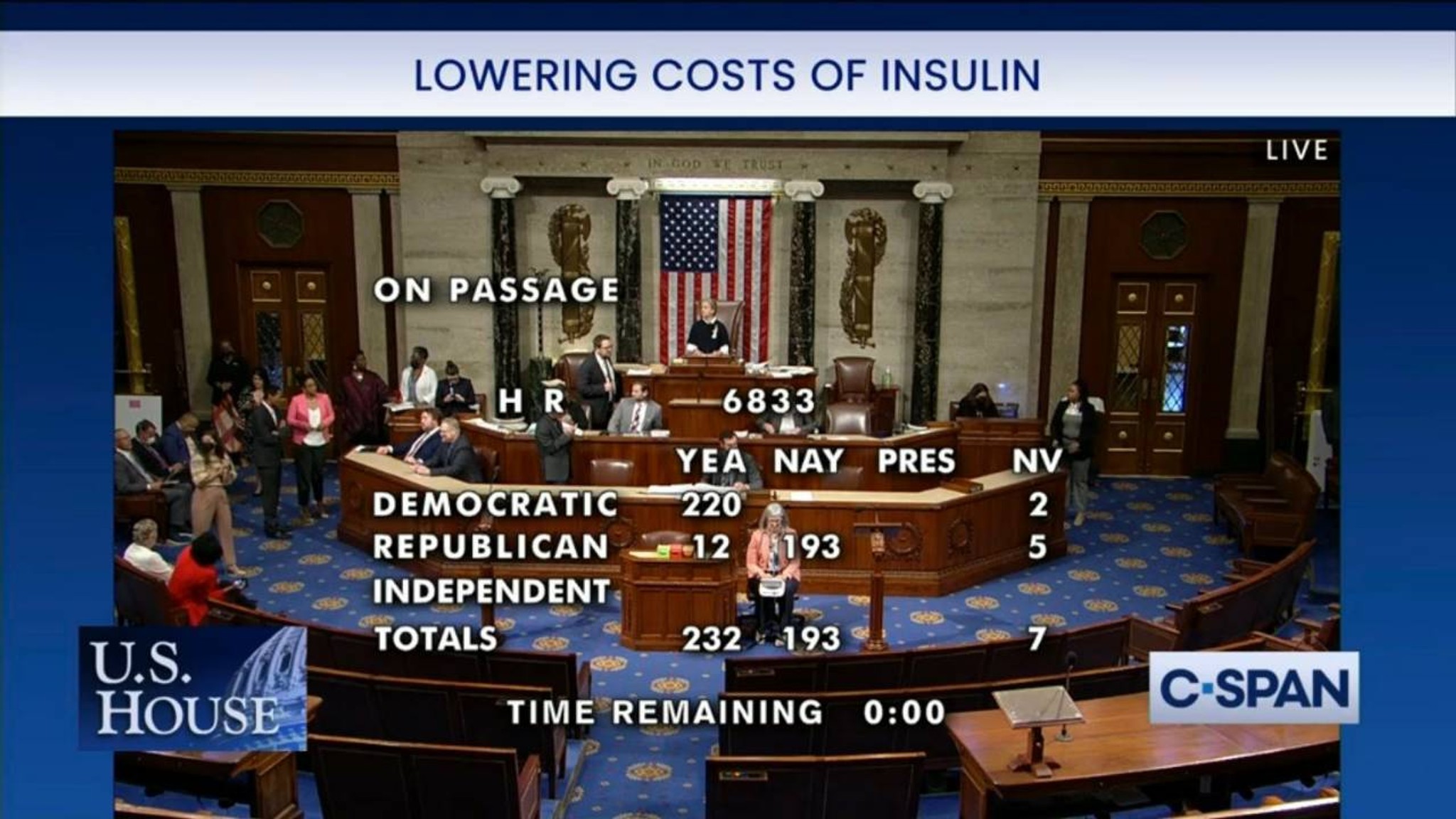 The Affordable Insulin Now Act passed in the House Thursday, 232-193. One-hundred-and-ninety-three Republicans are opposed to the more than 30 million Americans with diabetes being able to afford the drug that their lives depend upon. Just 12 House Republicans thought that was a good idea.